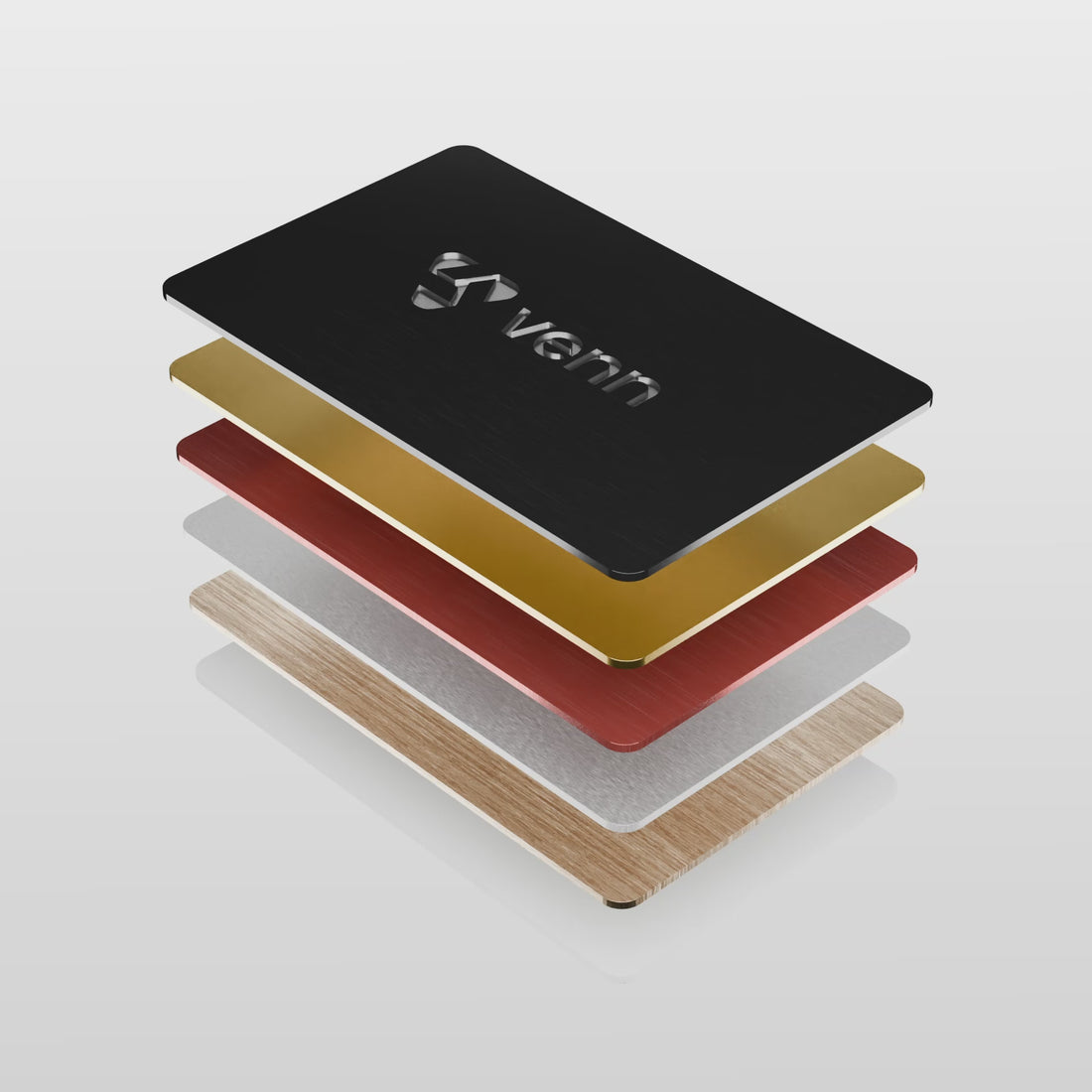 The bamboo VennCard blends eco-conscious materials with powerful tap-and-scan technology. Lightweight, durable, and beautifully unique — it’s a sustainable way to make a lasting first impression.